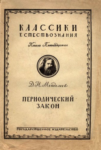 Пышный расцвет химии в конце XIX и в XX столетия можно в значительной степени тоже приписать гению одного ученого — Дмитрия Ивановича Менделеева, который дал плодотворнейшее обобщение, охватившее всю химию. Его "периодический закон" позволил разместить химические элементы в "периодическую систему", в свою очередь сделавшую очевидной их тесную взаимную связь и закономерную изменяемость всех свойств их, химических и физических; Периодическая система внесла в химию неизвестную до тех пор ясность и стройность и дала возможность объединить все многообразие химических явлений.