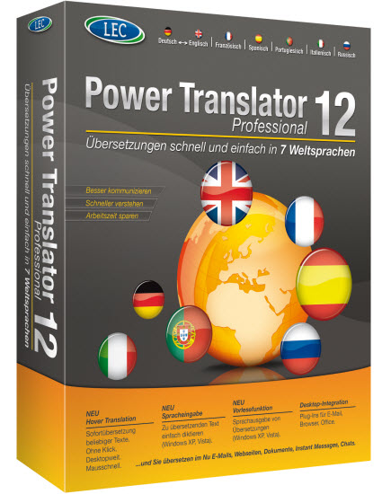 Power Translator Pro - машина-переводчик, делающая черновую работу перевода и способствующая бизнес росту компаний, обеспечивая больший доступ их персонала к техническим темам и деловым документам, выполненных на различных европейских языках. Это самая продвинутая настольная версия экономической бизнес линии от компании LEC. Переводите письма, электронную переписку по email, в чате, блогах и мессенжерах типа Icq. Переводите легко из любой программы, - аккуратно, быстро и гибко.