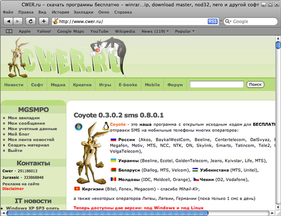 Apple представляет Safari для Windows. Safari 3, представленный на WWDC в Сан-Франциско, является самым быстрым браузером для Windows, основанным на стандартах iBench. Safari обрабатывает Интернет страницы в два раза быстрее, чем IE и в 1,6 раза быстрее, чем Firefox . Safari 3 прост и удобен в управлении.
