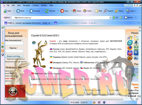 Smart Bro - браузер, построенный на основе Internet Explorer. Вы увидите табовый интерфейс, встроенный rss ридер, автоматическое заполнение форм, блокиратор всплывающих окон. Программа имеет привычный, простой интерфейс, управление может быть переключено на движения мыши. Для он-лайн игр предусмотрена встроенная боковая панель. В любой момент программа может спрятаться в трей, причем открыть её можно будет лишь введя пароль. Система быстрых заметок, удаление истории навигации или наоборот, открытие тех же страниц при перезапуске - всё это завершает портрет небольшого и довольно удобного браузера.