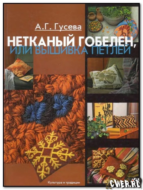 В этой книге речь пойдет о технике, известной под названиями "набивка", "вышивка петлей" или "нетканый гобелен". Чем же отличается эта техника? Вышивают гобелен специальной иглой, причем научиться пользоваться ею достаточно просто. С лицевой стороны изделия получаются петли, с изнаночной - плоскиe гладкие стежки. Петли можно разрезать, подстричь, распушить, сформировать из них шарики, волны, то есть придать гобелену разнообразную фактуру. Если сочетать все эти способы, то получится множество комбинаций, позволяющих любой рукодельнице проявить мастерство и сделать работу единственной в своем роде.