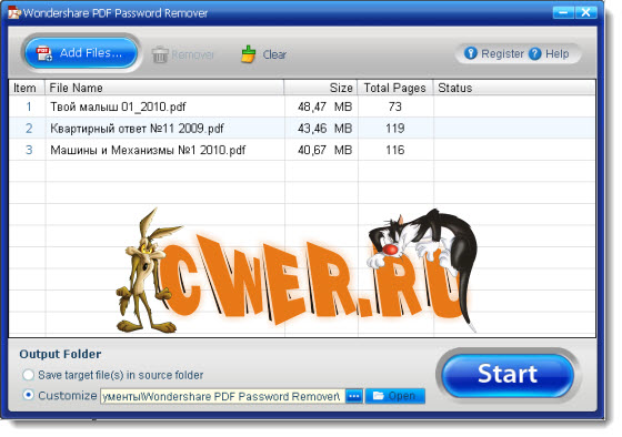 Wondershare PDF Password Remover - удаляет пароли и снимает ограничения с PDF файлов. Бывает так, что у вас есть полное право на редактирование PDF документа, но вы забыли пароль к нему. Или так, что ваш коллега создал отчет в формате PDF, но он больше не работает в вашей фирме. У такой проблемы есть решение! Кликните правой кнопкой мыши по PDF файлу, выберите функцию Decrypt with Wondershare PDF Password Remover из меню и вуаля! Вы сможете распечатывать и редактировать PDF документ.