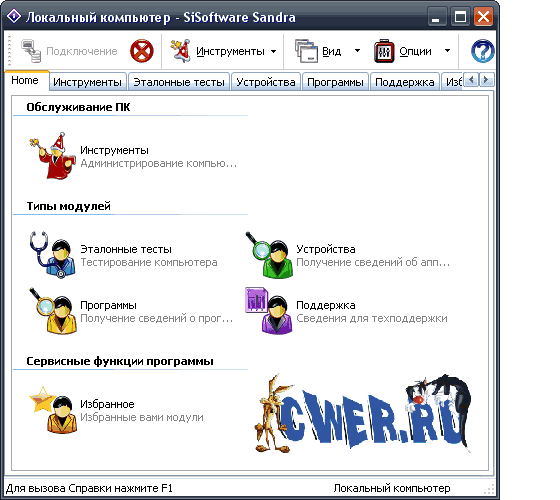 SiSoftware Sandra - это системный анализатор для 32-х и 64-битных версий Windows, включающий в себя тестовые и информационный модули. Sandra старается превзойти другие подобные утилиты и показать реальную картину, объединяя в одной программе возможности для сравнения производительности как на высоком, так и на низком уровне. Вы можете получить сведения о процессоре, чипсете, видеоадаптере, портах, принтерах, звуковой карте, памяти, сети, Windows, AGP, соединениях ODBC, USB2, Firewire, и других.
