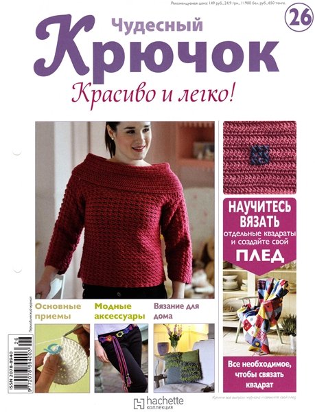 Коллекция «Чудесный крючок. Красиво и легко!» — это простой и доступный способ освоить искусство вязания крючком. С каждым номером вы сможете научиться различным способам вязания крючком, а также познакомитесь с новым узором, выполнение которого представлено пошагово с помощью простых объяснений и фотографий. В каждом выпуске предлагаются прекрасные модели для вас и вашего дома. Откройте в себе талант и познайте радость творчества! Регулярно получая описания простых в исполнении моделей, вы соберете собственную коллекцию.