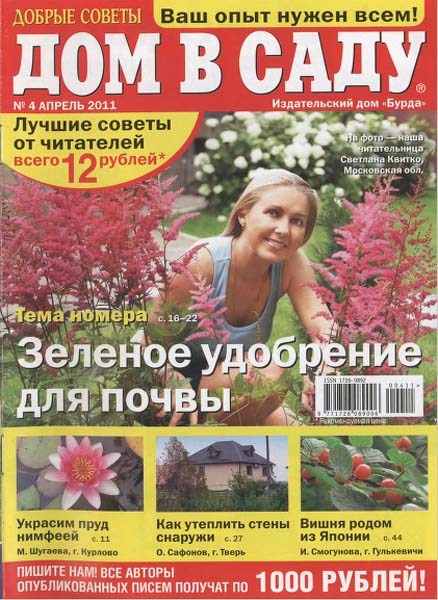 Ежемесячный интерактивный журнал для всех, кому интересно садоводство, огородничество, строительство и ландшафтные работы. Основная часть журнала — письма читателей, в которых они делятся своим опытом выращивания декоративных, садовых и овощных культур, обустройства дачного участка, защиты растений от болезней и вредителей, строительства и украшения дома.