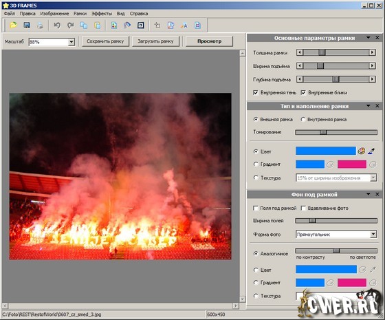 3D FRAMES - графический редактор, позволяющий создавать яркие и стильные рамки для фотографий. В отличие от других подобных продуктов, программа генерирует каждую рамку в режиме реального времени, передаёт тени, блики и другие эффекты освещения.