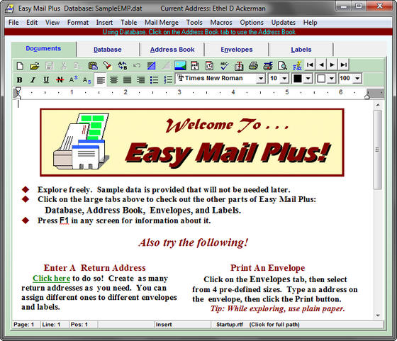 Easy Mail Plus напечатает и отправит ваше сообщение по факсу или по электронной почте, подготовит конверт и напечатает марку. И лучше всего то, что вы не меняете настройки вашего принтера! Встроенная функция импорта использует простую технологию перетаскивания для того, чтобы быстро создавать Address файлы с ваших существующих файлов с данными.